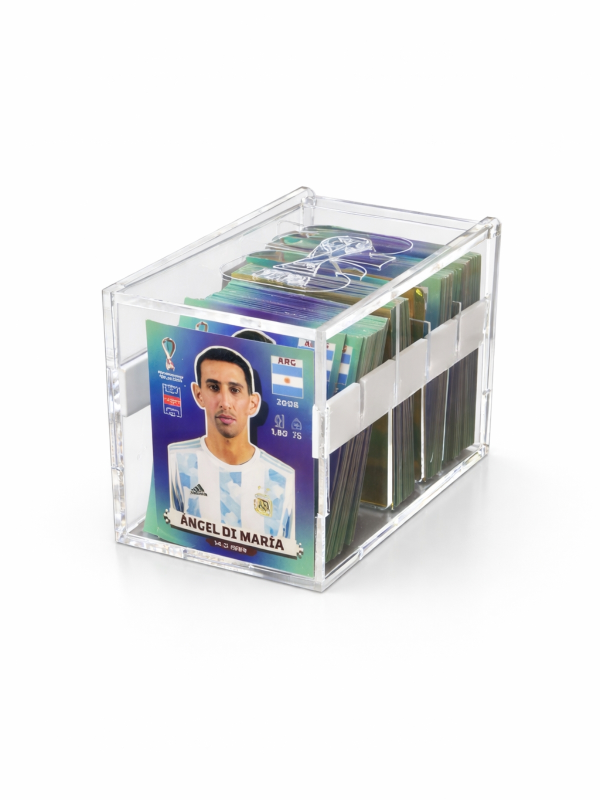 A Caixa para Figurinhas da Copa 2026 em Acrílico da Acrihome Acrílicos é a escolha ideal para quem quer organizar e destacar a coleção com mais estilo. Produzida em acrílico transparente de 3mm, ela oferece um visual moderno, limpo e atrativo, perfeito para guardar figurinhas, cards, cromos e outros colecionáveis de futebol.