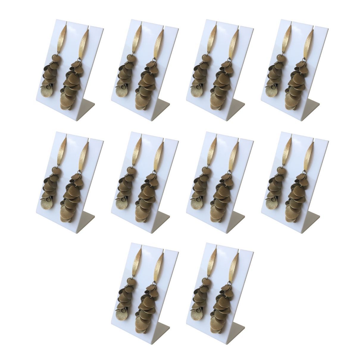 O design em acrílico branco oferece uma estética moderna e clean, criando um fundo perfeito para realçar a diversidade de estilos e cores dos seus brincos. Com capacidade para exibir até 10 peças, este expositor é ideal para organizar e mostrar sua coleção de maneira ordenada e atraente.
