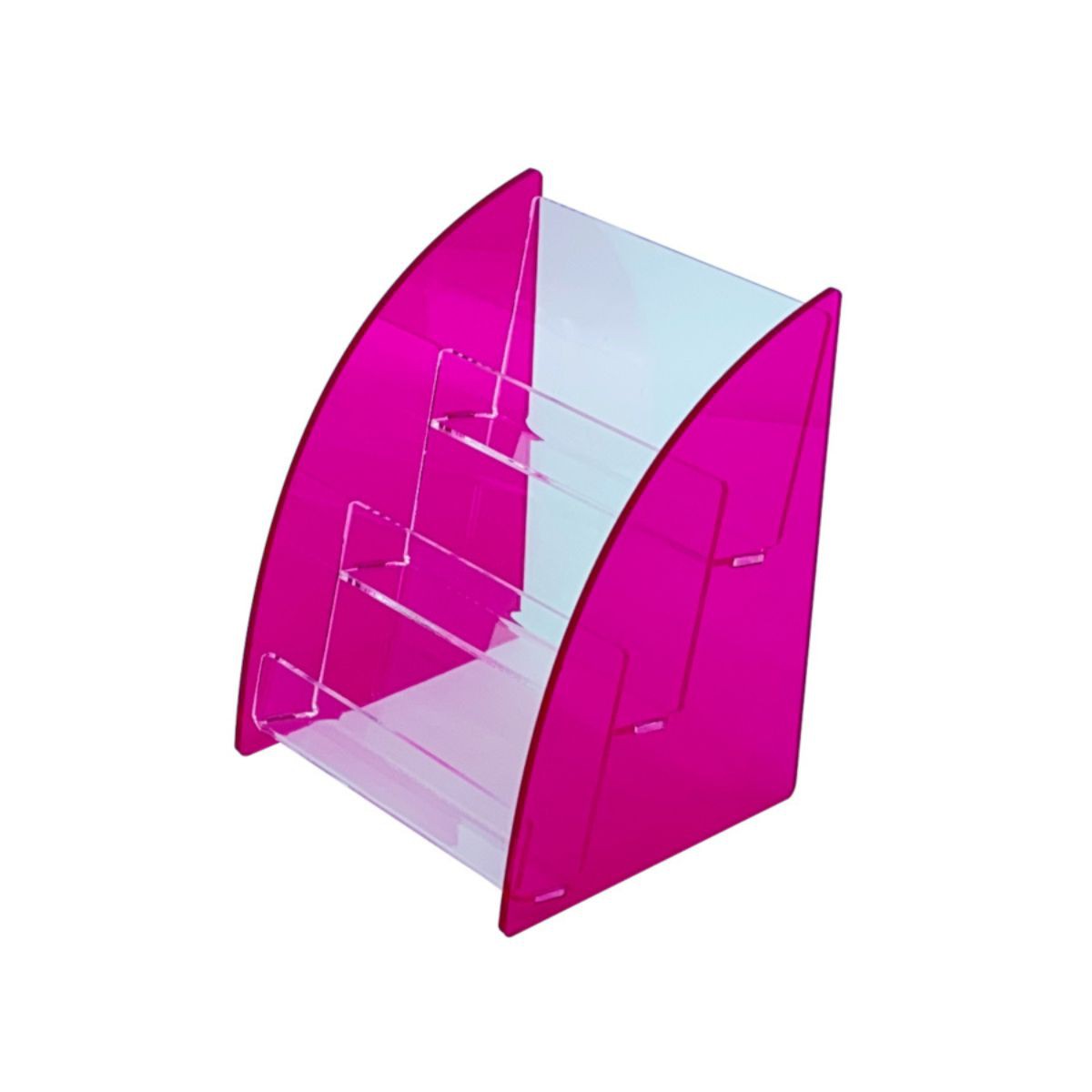 Confeccionado em acrílico de alta qualidade, o design transparente oferece uma visão clara e fácil identificação dos cartões, enquanto a tonalidade rosa sutil acrescenta um toque de delicadeza. Com três compartimentos distintos, este porta cartão permite uma categorização eficiente, facilitando o acesso rápido e organizado aos seus contatos.