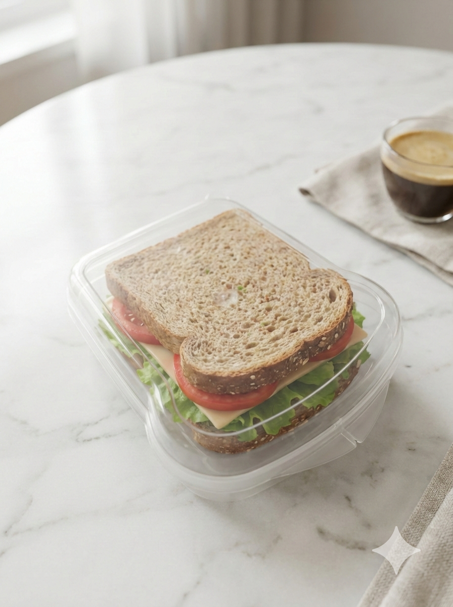 Além disso, o design transparente facilita a visualização do alimento e ajuda na organização da sua lancheira.